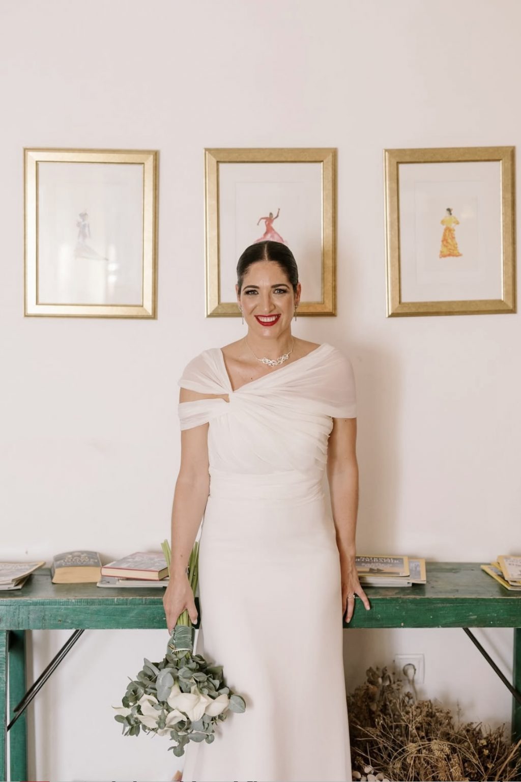 Por último, los zapatos fueron un regalo de su amiga de la infancia de Calenda, y como toque final eligió el perfume Narciso for Her y un ramo diseñado por David Lara.