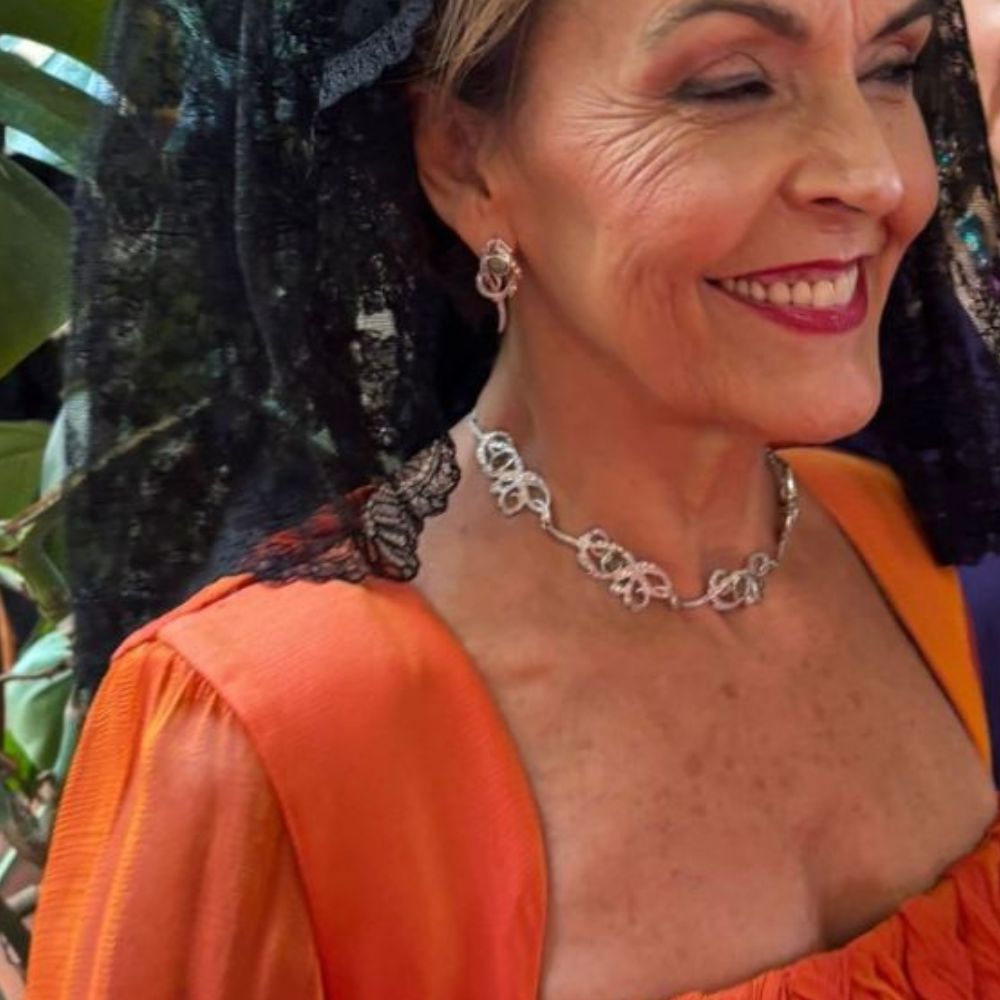 Asimismo, está diseñado y fabricado íntegramente en Sevilla, realizado en Plata de Primera Ley con acabado en Oro Blanco de 18 quilates, y cada cristal se engasta cuidadosamente a mano. Esto garantiza definición, resistencia y una calidad excepcional en cada pieza.