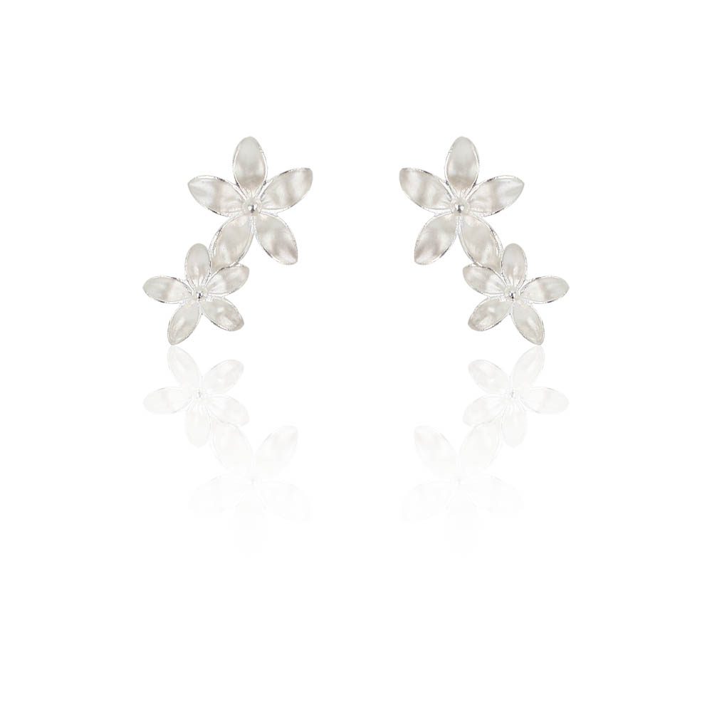 Su diseño es desmontable, lo que permite usar el jazmín superior por separado para un estilo más discreto o lucir ambas piezas para un efecto más sofisticado. Dos formas de llevarlos, adaptadas a diferentes momentos del día.