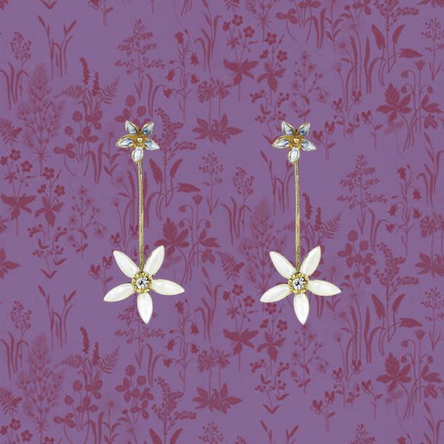 Los Pendientes Jazmín Star M están inspirados en la magia de las constelaciones. Cada pendiente evoca un pequeño universo de estrellas que brillan sobre la piel. Los jazmines incorporados simulan el resplandor del firmamento azul y aportan una estética poética y luminosa.