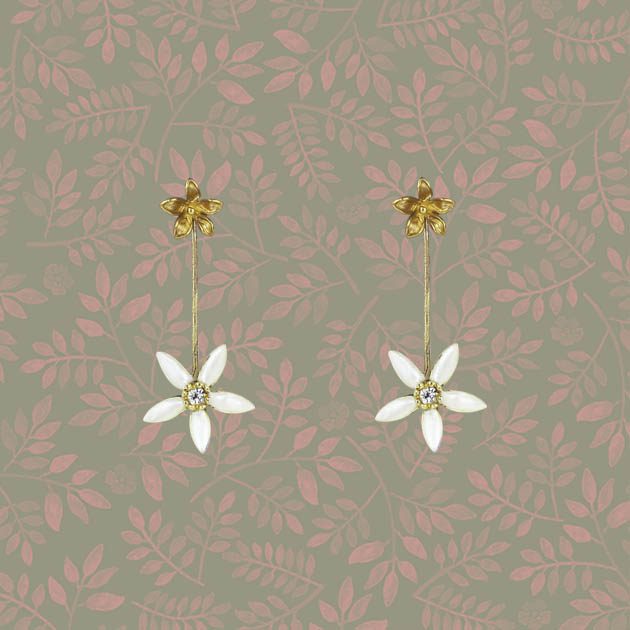 Además, su diseño desmontable permite usarlos de dos formas diferentes. Puedes llevar solo el jazmín superior para un estilo discreto o añadir el aplique completo para un look más sofisticado. Esta versatilidad los convierte en una joya ideal para cualquier ocasión.