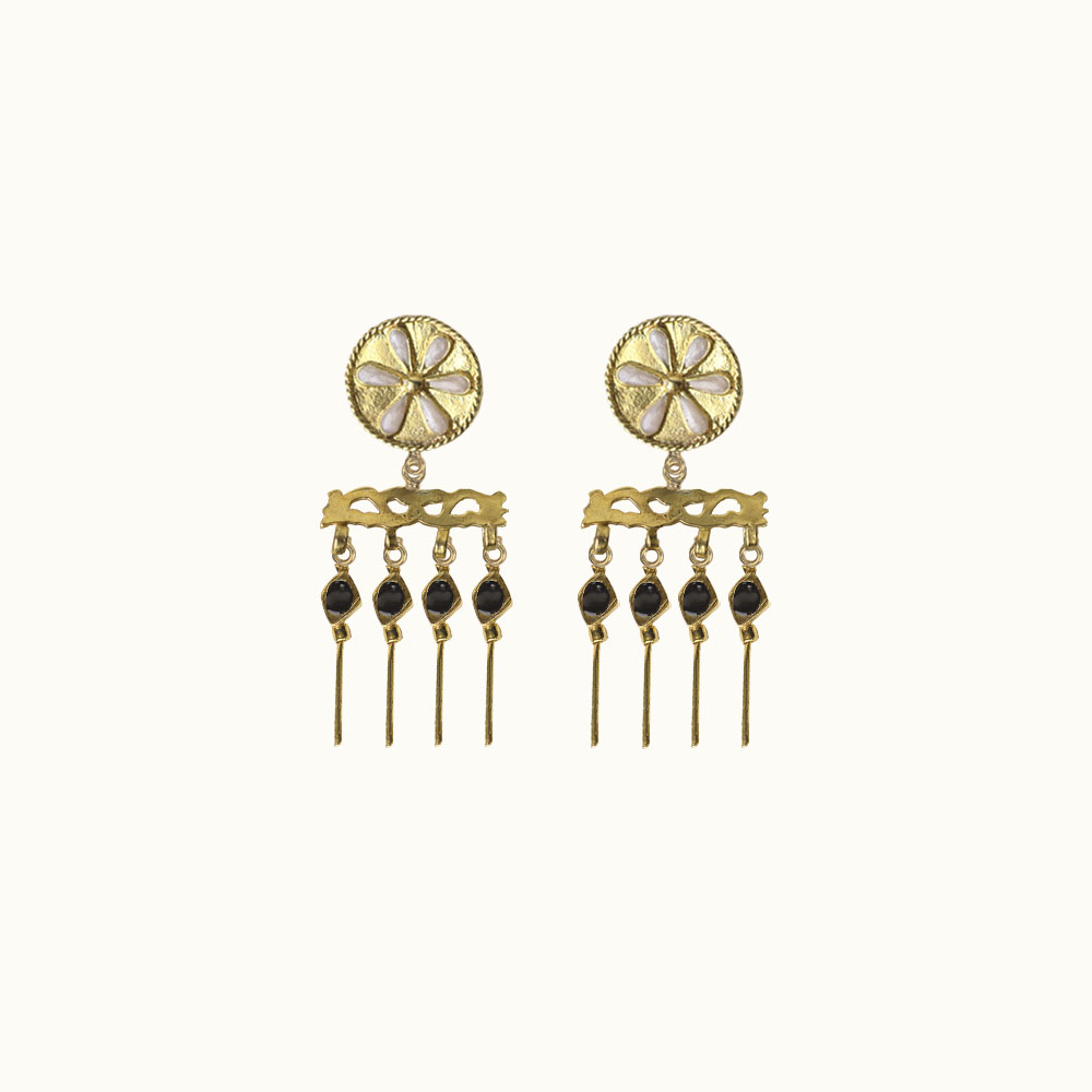 Cada par se realiza mediante fundición artesanal en latón, con un baño de oro de 24 kt que garantiza brillo y durabilidad. Las piedras de malaquita natural y los corales auténticos se seleccionan cuidadosamente por su color y textura, y se combinan con delicados toques de esmalte de alta calidad.