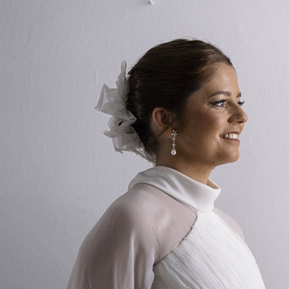 Cada elemento ha sido cuidadosamente diseñado para mantener la proporción, la simetría y una caída limpia. La pieza genera un efecto de alargamiento sutil del rostro, realzando la expresión y aportando luz con discreción y equilibrio.