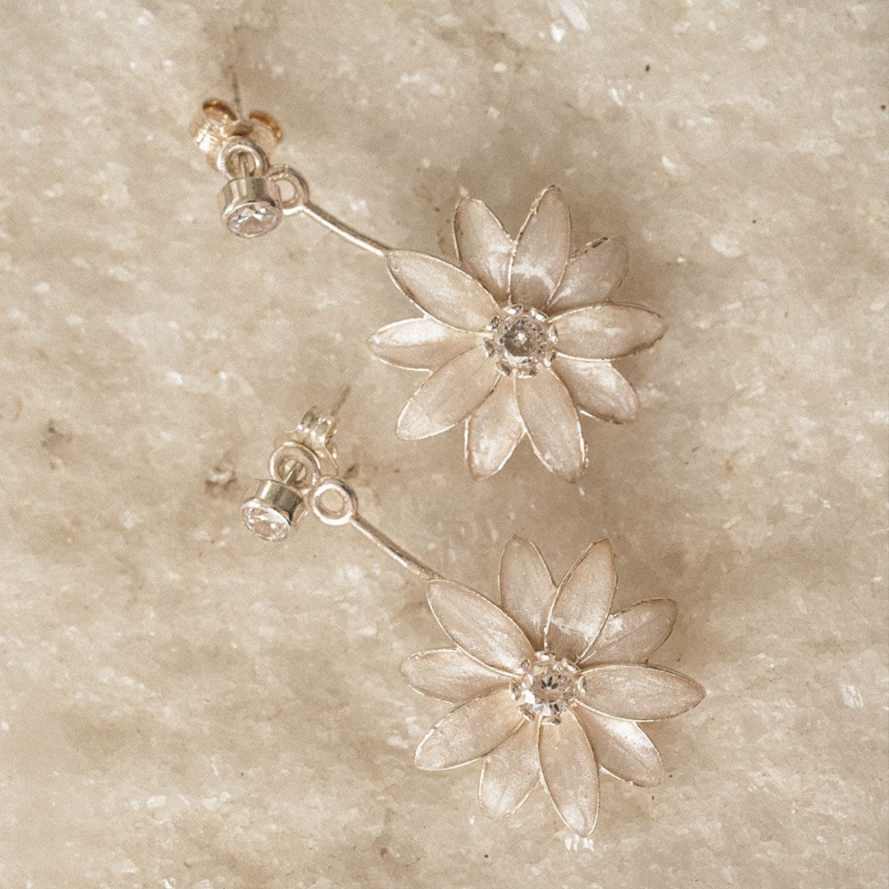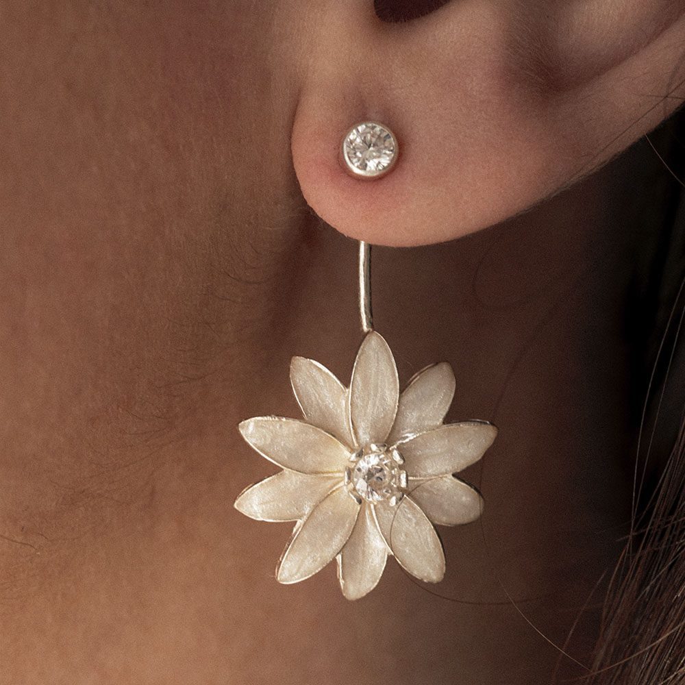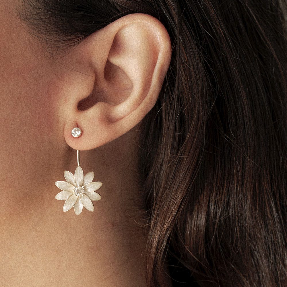 Los Pendientes Novia Jazmín Edelweiss Pearl son una expresión sublime de sofisticación, luz y equilibrio. Inspirados en la pureza de la flor de Edelweiss y la delicadeza del jazmín, reinterpretan la naturaleza en una joya de líneas suaves y proporciones perfectas.