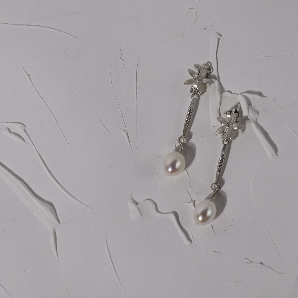 Realizados en Plata de Ley con cristales de talla brillante y puede personalizar el acabado. Los Pendientes Novia Perlas y Jazmines son desmontables, quedando el cierre superior libre, para usarlo de dos formas diferentes.