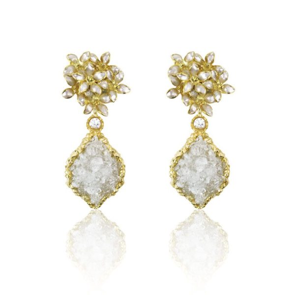 Los Pendientes Carmeron están inspirados en la eternidad de los recuerdos y en la belleza de lo que perdura. El diseño de los Pendientes Carmeron rinde homenaje a la luz del cielo de Sevilla, con una cristalización natural en tono cerúleo que refleja serenidad y elegancia.