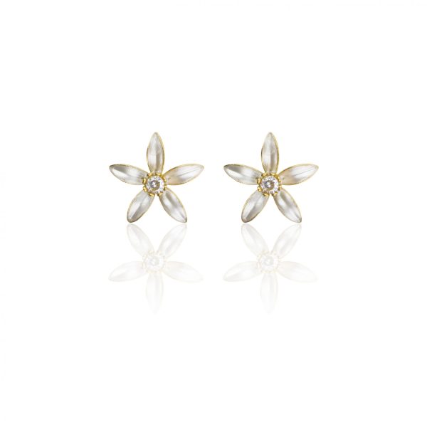 Cada pendiente es elaborado con la técnica de microengaste, asegurando un acabado impecable y una sujeción precisa. El interior de cada detalle ha sido texturizado manualmente con punta de diamante, lo que confiere a cada pieza un carácter único e irrepetible.